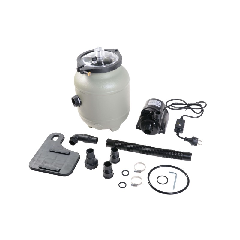 - Pompa z filtrem wstępnym: 400 W 10 m³ / h (certyfikat CE / GS). Z wtyczką bezpieczeństwa GFCI.