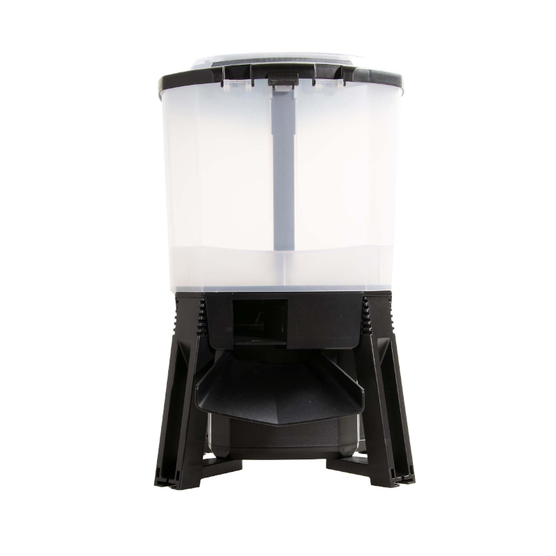Panel słoneczny automatycznie ładuje wewnętrzny akumulator, aby zasilić podajnik. Podajnik jest wyposażony w kołki, które pozwalają podnieść go wyżej nad ziemię.