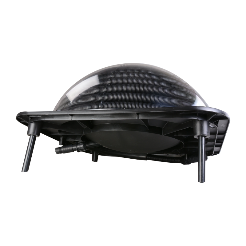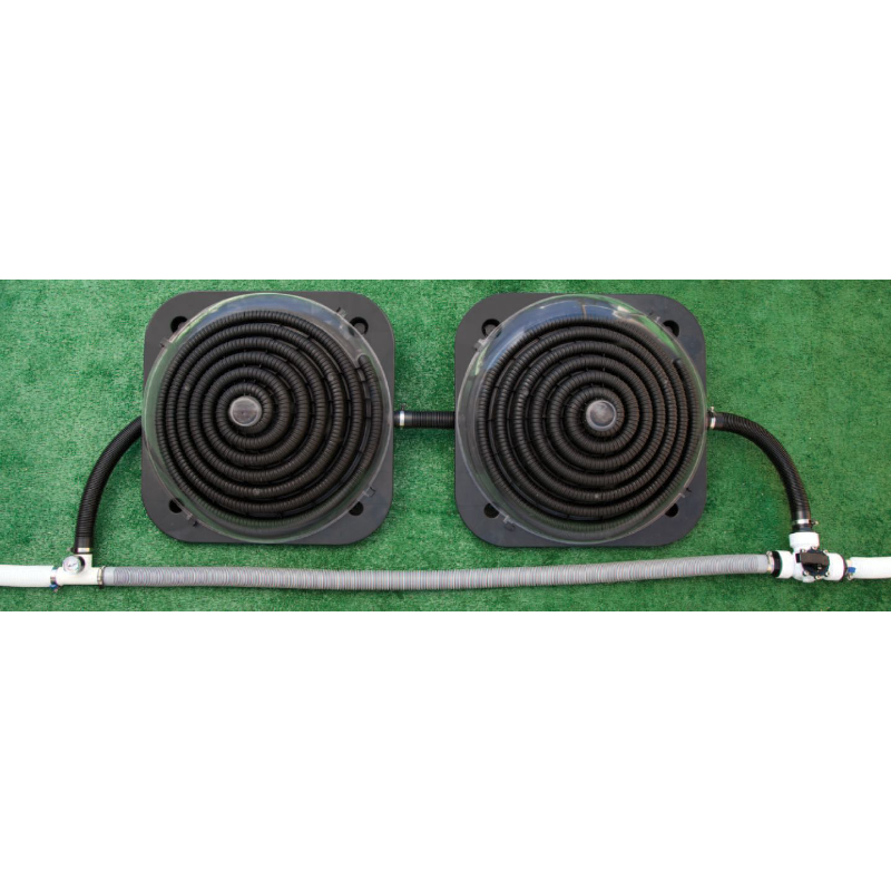 Ten podgrzewacz solarny można podłączyć za pompą i filtrem za pomocą adaptera 32/38 mm. Najlepiej ustawić podgrzewacz pod kątem 30° w kierunku południowym. Minimalna wydajność pompy musi wynosić 2000 litrów/godzinę.