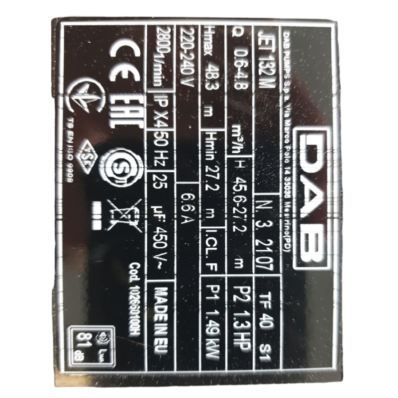 Samozasysająca pompa odśrodkowa DAB JET 132M