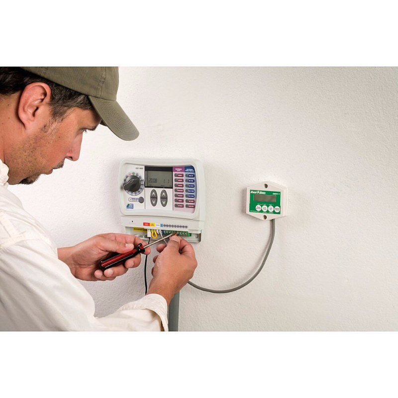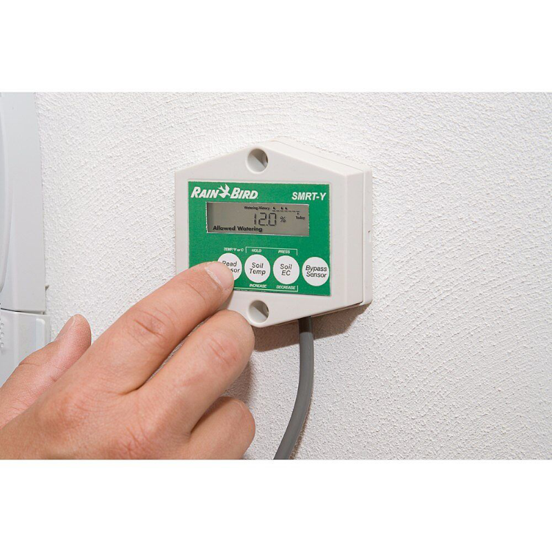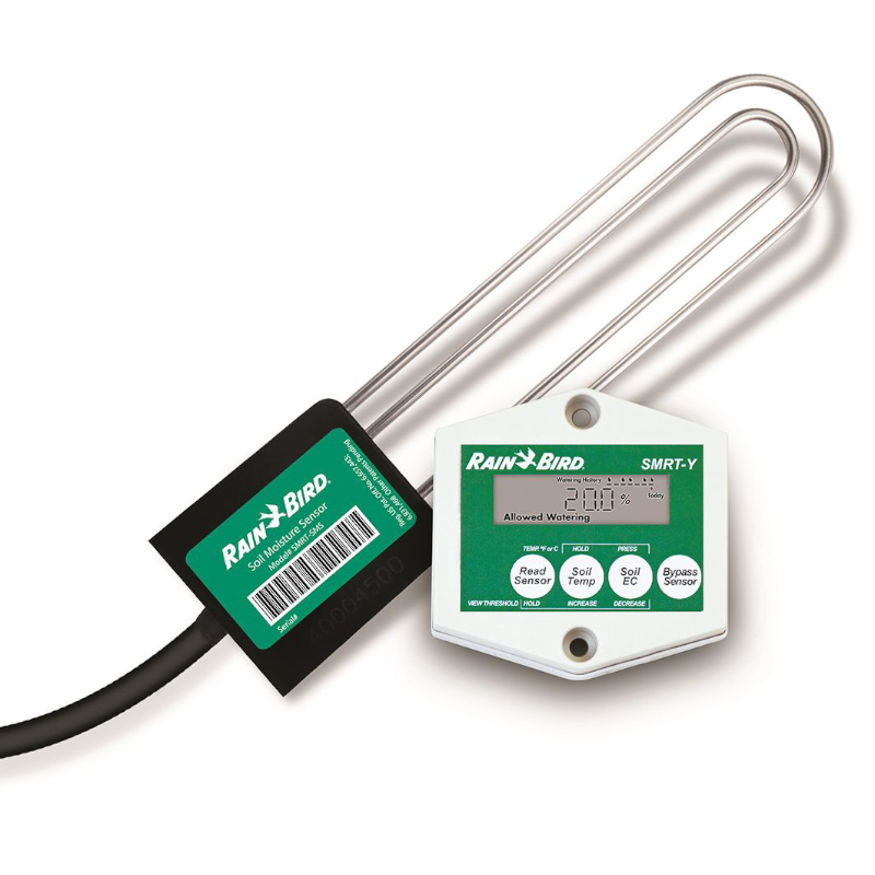Ten zestaw czujników wilgotności zamienia każdy (24 V) sterownik w oszczędzający wodę „inteligentny sterownik”. Dostarczany z interfejsem sterownika do podłączenia do sterownika. Czujnik (cewka) jest wykonany ze stali nierdzewnej 304. Ten czujnik mierzy i rejestruje zarówno wilgotność, temperaturę, jak i przewodność. Co 10 minut mierzona jest wilgotność gleby, a nawadnianie rozpoczyna się lub zatrzymuje na podstawie ustawionych wartości. Jeśli nie chcesz używać czujnika, istnieje możliwość obejścia.