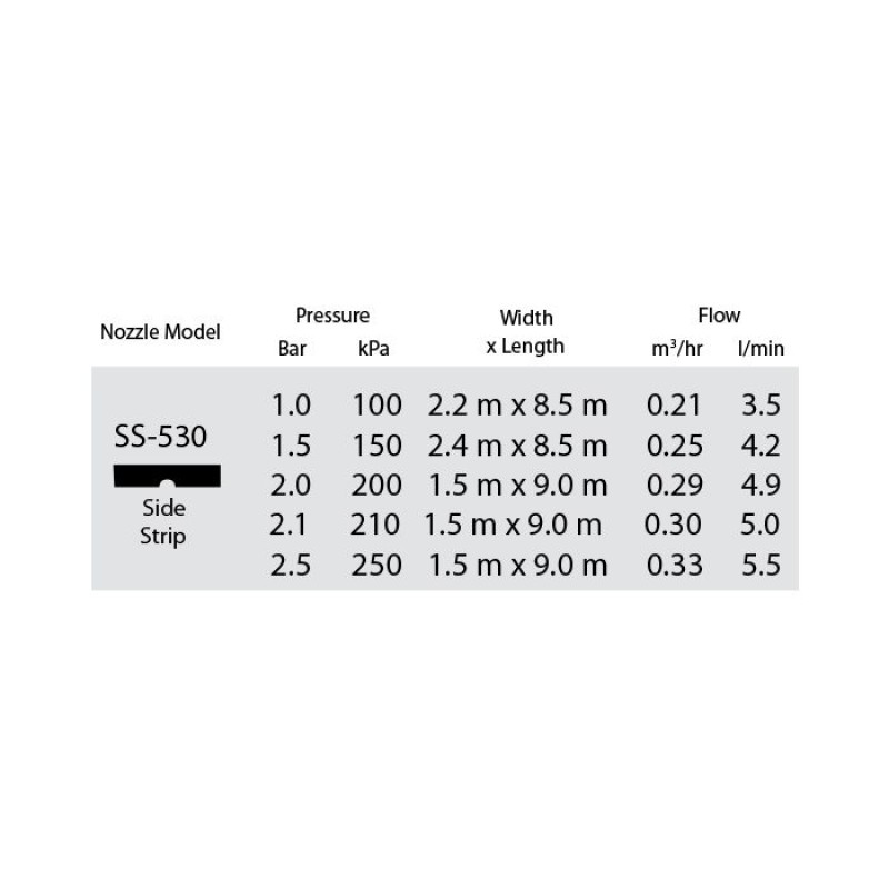 Zraszacz wynurzalny 10 cm z regulowanym kątem między 1 ° a 360 °. Ciśnienie robocze od 1,4 do 4,8 bar.
